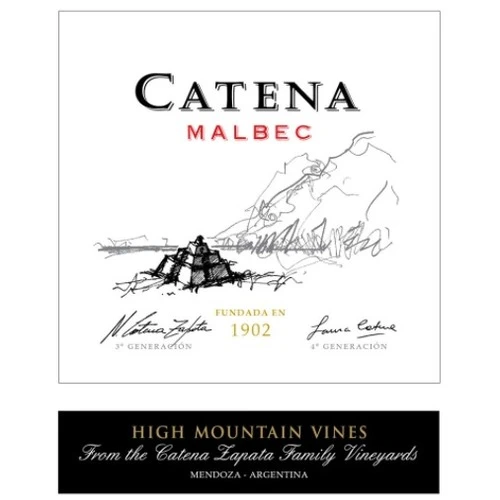HIGH MOUNTAIN ESTATE VINEYARDS The Catena wines are a special assemblage of High Mountain Estate Vineyards made by fourth generation vintner Laura Catena and chief winemaker Alejandro Vigil. Although we have found that most of the Catena wines are consumed shortly after release we are pleased to see that they age beautifully for ten to twenty years. Through decades of study and exploration within Mendoza’s high altitude mountain terroirs the Catena family has identified special locations for its Estate vineyards. From the marriage of these historic vineyards emerges a wine of unique character that has natural balance concentration and a distinct varietal identity. VINIFICATION This wine goes through an extensive cold maceration for 5 days at 48ºF (8 8ºC) to extract aromas. The juice is then fermented for 16 days with a post-fermentation maceration of 22 days. Wild Yeasts. Elevage: 12-14 months in barrel. Barrel selection varies depending on vineyard and vintage – Firs